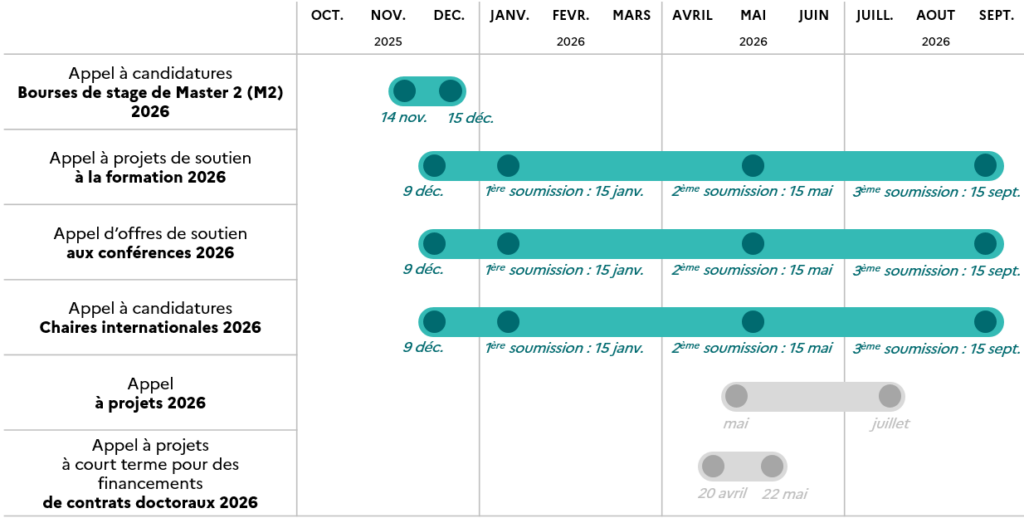 Voici un calendrier prévisionnel des appels 2026 du PEPR Maths-Vives, sous réserve de modifications :