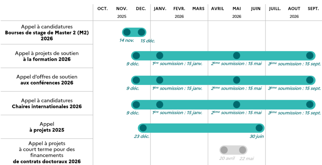 Voici un calendrier prévisionnel des appels 2025/2026 du PEPR Maths-Vives, sous réserve de modifications :